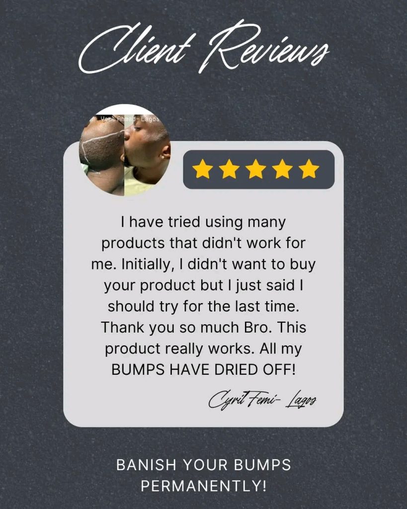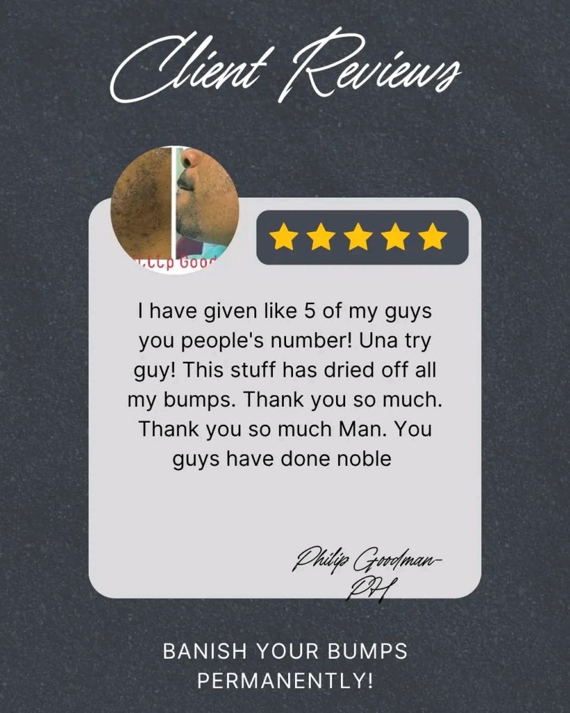 Trusted by thousands of Nigerians who used to suffer painful, ugly bumps after every shave…