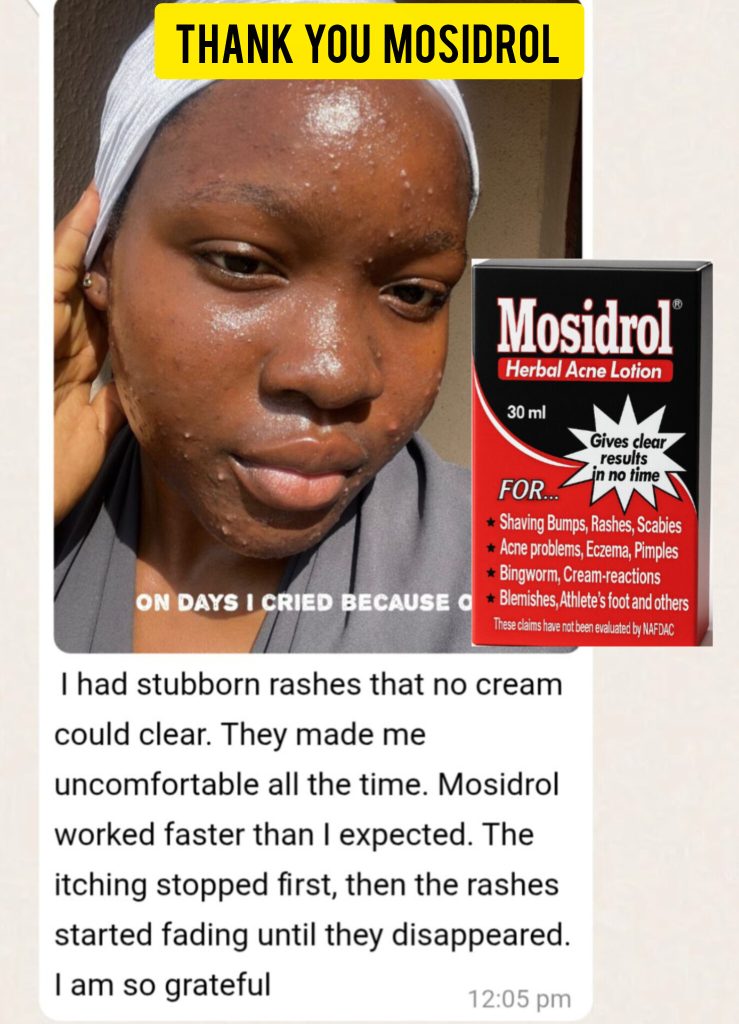 If you’ve been humiliated by shaving bumps, rashes, eczema, pimples/acne, scabies, ringworm, cream reactions, blemishes, stretch marks, warts, keloid, athletes foot that won’t go away… Here’s the herbal breakthrough changing lives across Nigeria